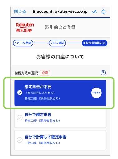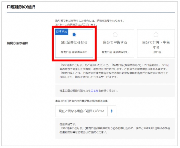 「特定口座(源泉徴収あり)」を選択しておきましょう。