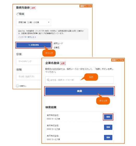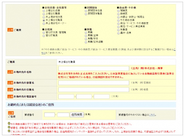 ご職業や、インサイダー登録など、登録をお願いいたします。(職場に連絡がいくことはありませんので、ご安心ください。)