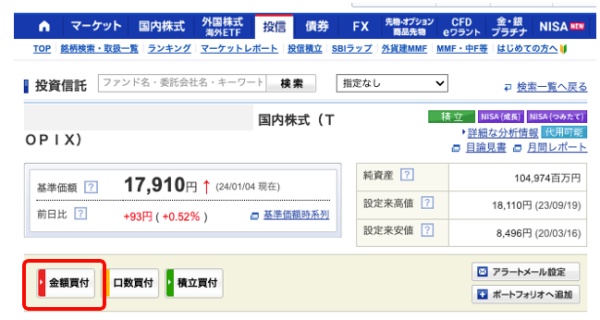 続いて、「金額買付」をクリックします。
