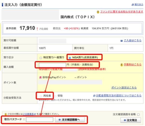 下記の「ファンド名」は、入力した商品名をコピーしておくと、次の買付のときに、貼り付けするだけでいいので楽ちんです^^