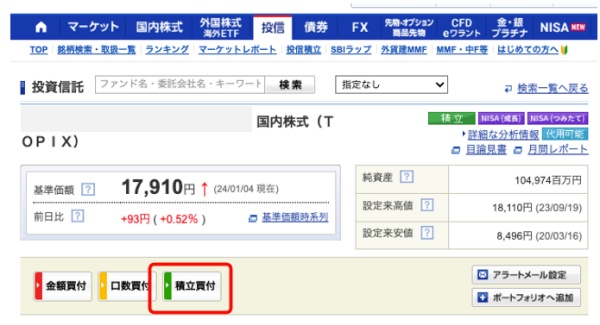 「積立買付」をクリックします。